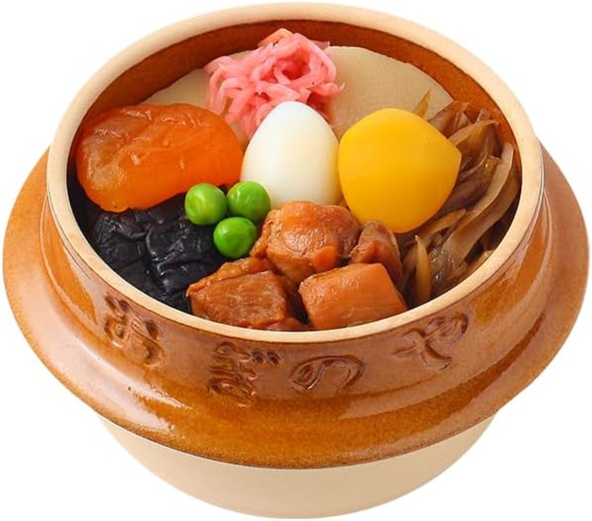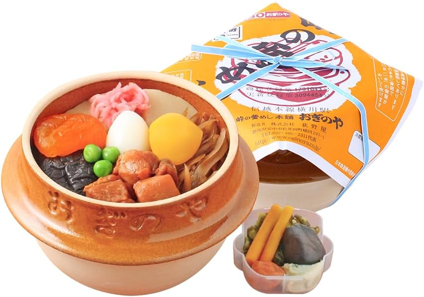 1958年に誕生した駅弁「峠の釜めし」は、全国に名を広めた看板商品です。益子焼の陶器釜を器に用い、鶏肉、ごぼう、椎茸、栗、うずらの卵、杏など多彩な具材を秘伝のだしで炊き込んだ素朴で温かみのある味わいが特徴で、旅の楽しみを象徴する存在となりました。