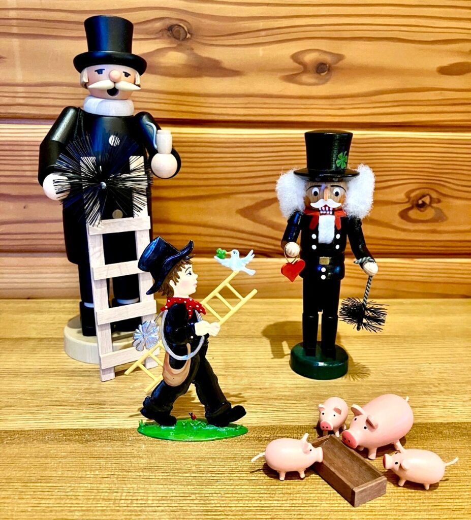 「くるみ割り人形」はE.T.A.ホフマンの児童小説や、バレエ音楽に登場する存在としても知られます。現在生産されている「くるみ割り人形」の多くは観賞用ですが、大型のものになると、実際にくるみを割ることができます。「パイプ人形」は火のついたお香を人形の内部に置くことで、口から煙が出ているように見せる、ユニークな人形です。