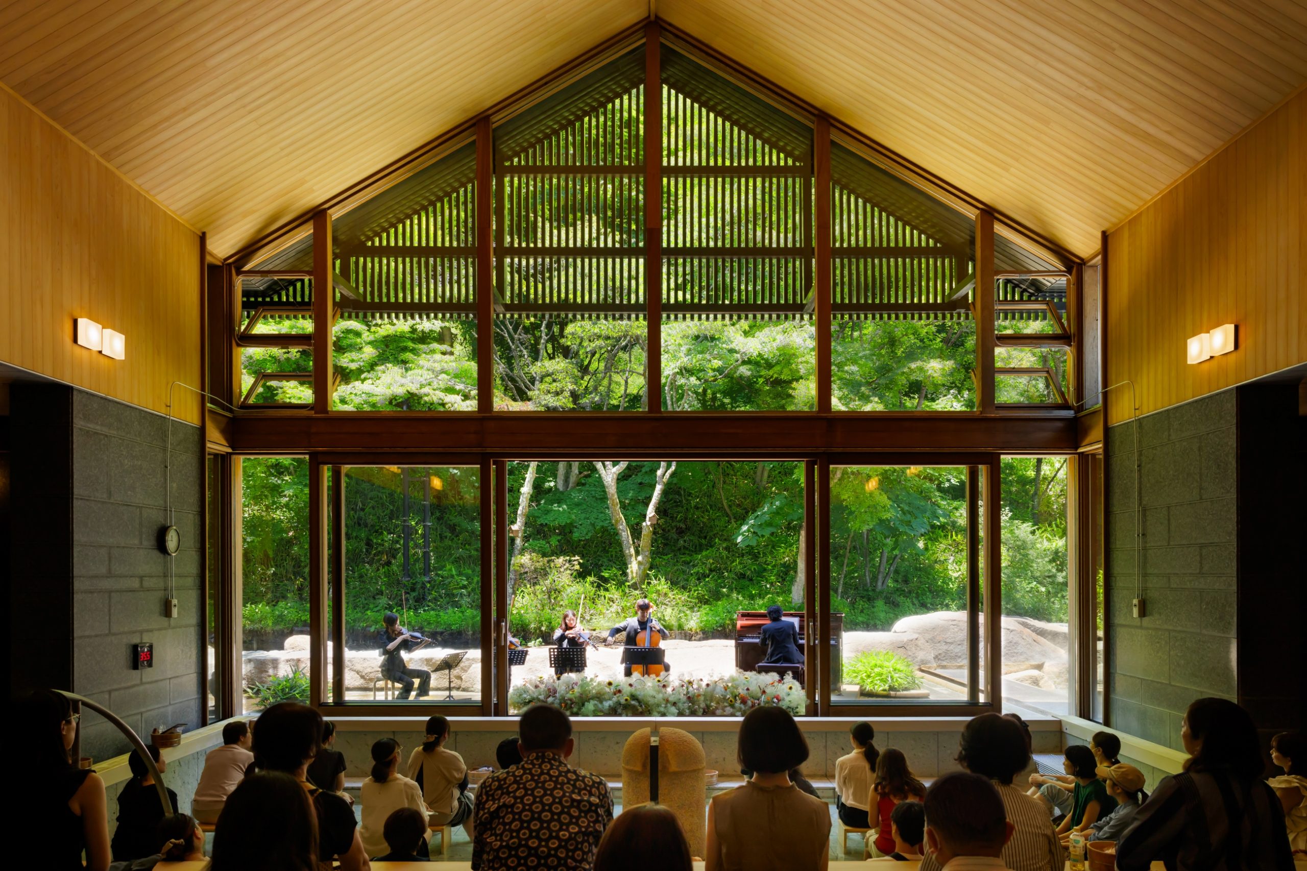 高い天井が特徴の内湯をコンサートホールに