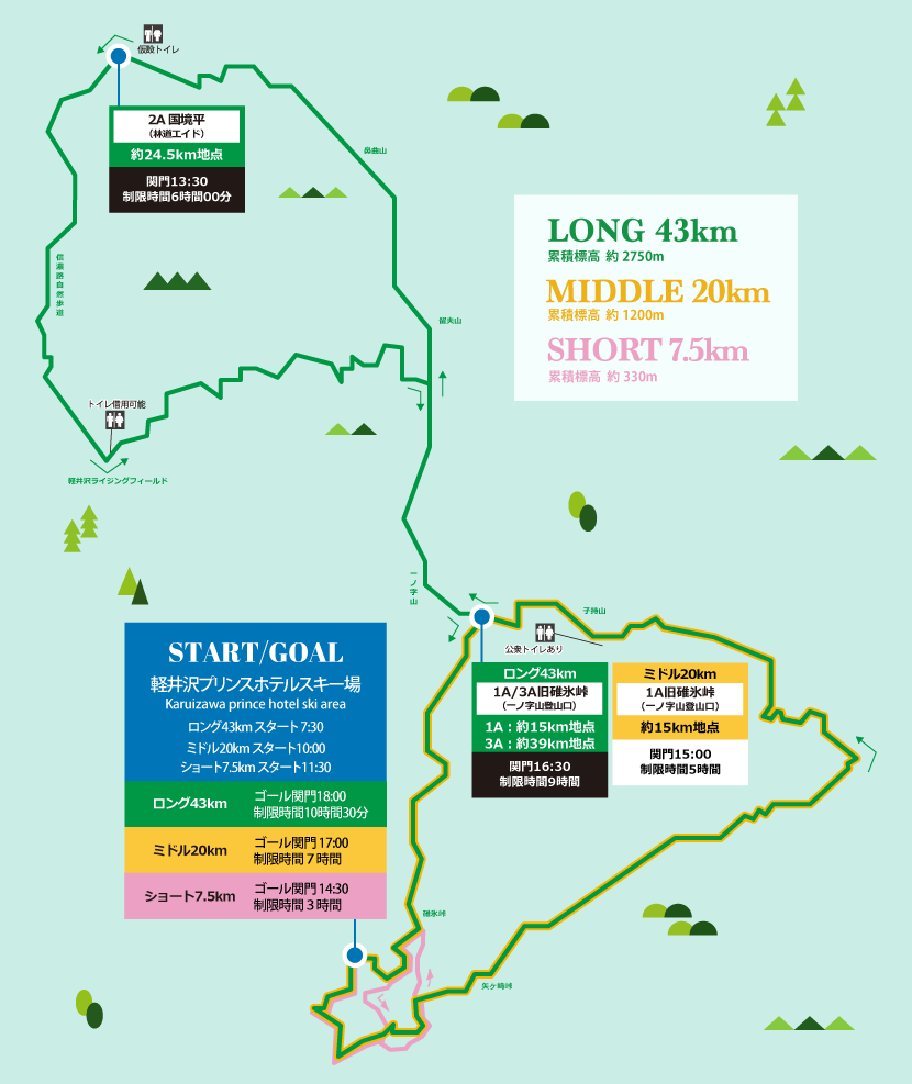 スタート・ゴールは軽井沢プリンススキー場で、新幹線駅から徒歩圏内、当日受付OKという手軽さも嬉しいところです。