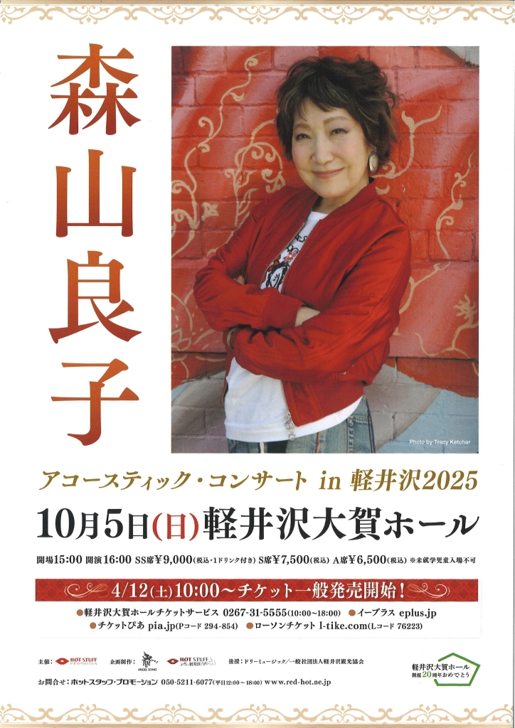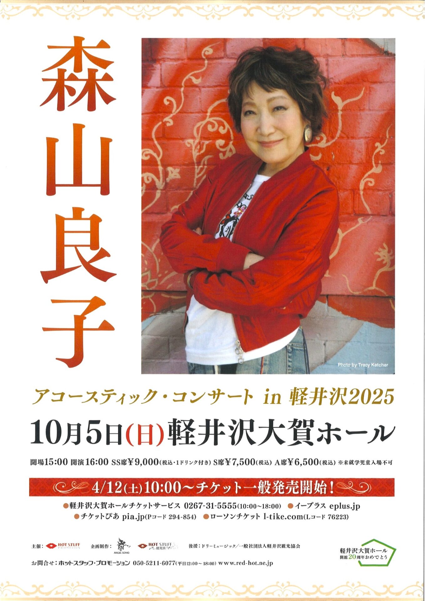 2025年10月5日(日)、軽井沢大賀ホールで森山良子さんのアコースティック・コンサートが開催されます。