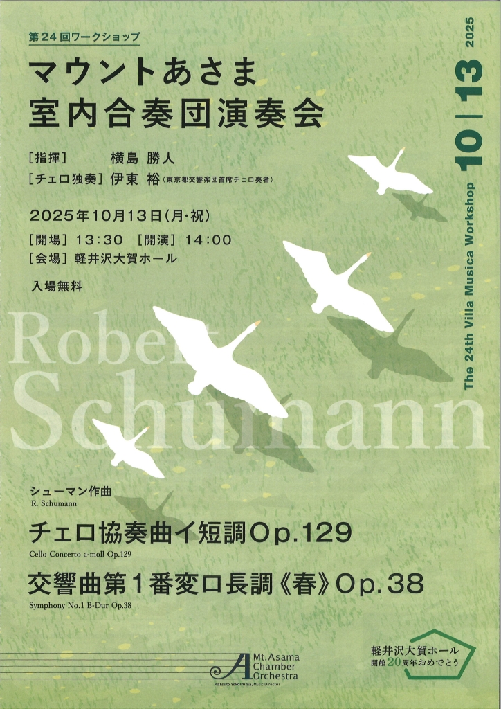 軽井沢の秋を彩る恒例イベント「マウントあさま室内合奏団演奏会」。今年は 10月13日(月・祝)、軽井沢大賀ホールにて開催されます。
