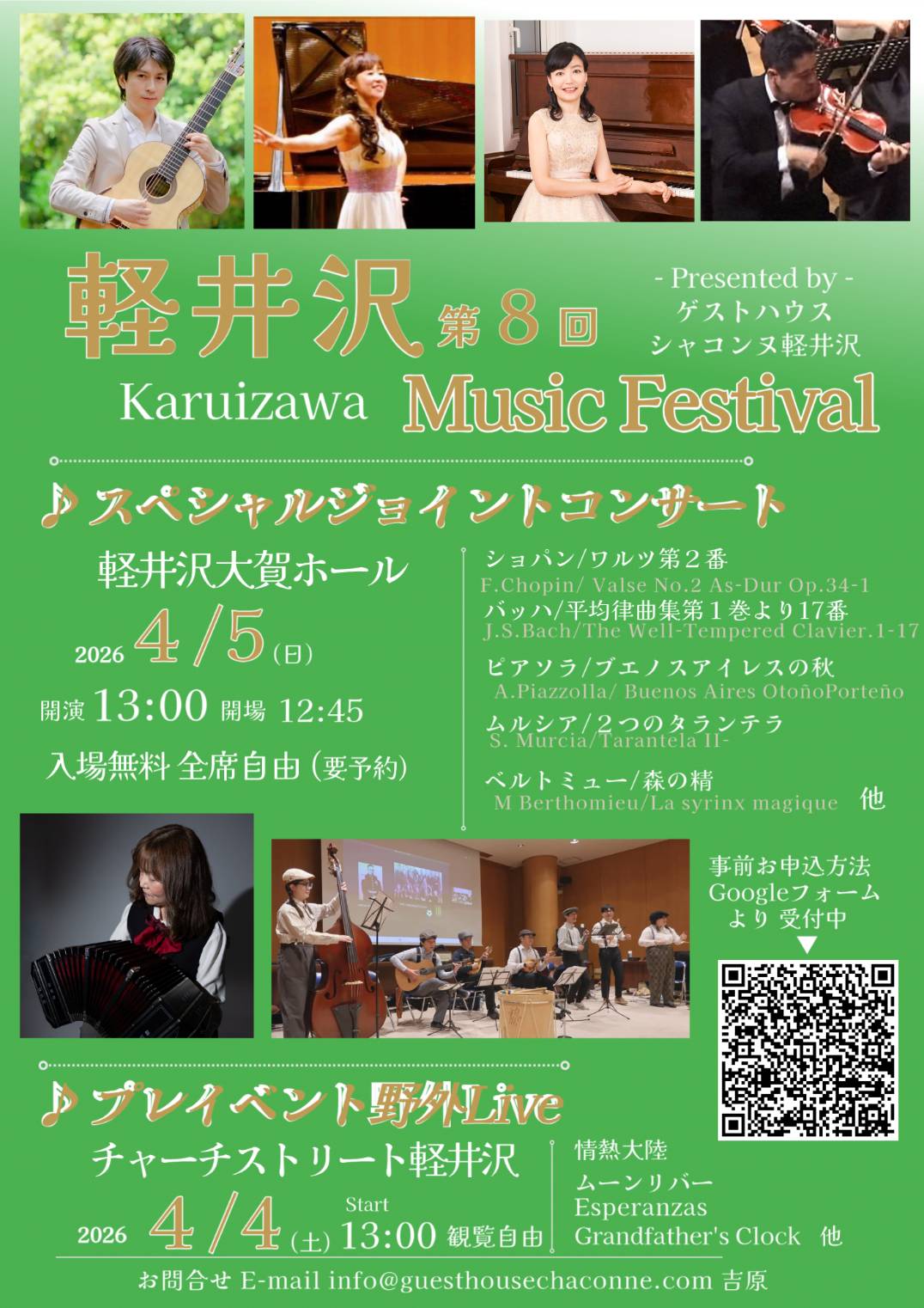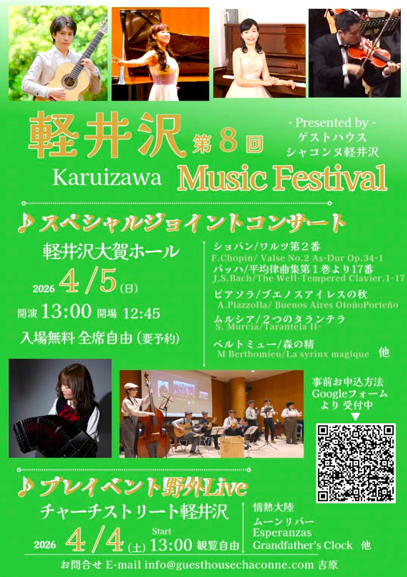 軽井沢 MusicFestival第8回スペシャルジョイントコンサートは、4月5日(日)12:45開場/13:00開演、軽井沢大賀ホールにて開催される音楽イベント。