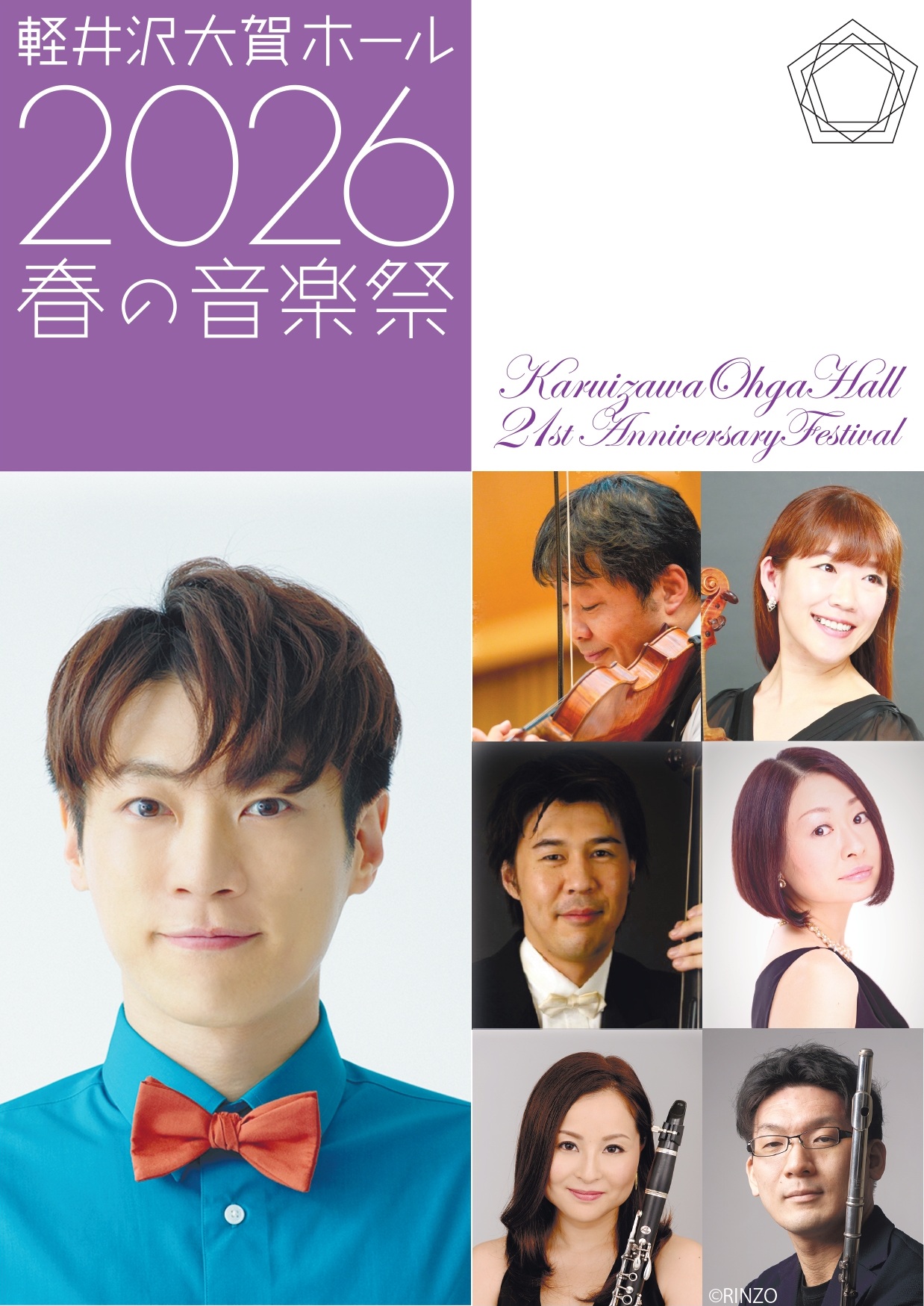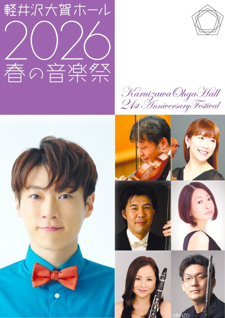 軽井沢大賀ホール2026春の音楽祭。横山だいすけお兄さん参加の室内楽演奏会。親子で聴いて・見て楽しいコンサート! 出演はスペシャルゲストに横山だいすけ(歌)、ヴァイオリンはクロード・小林、松澤つばさ、コントラバス・中川隼、ピアノ・室塚佳子、フルート・河野彬、クラリネット・井上梨江。