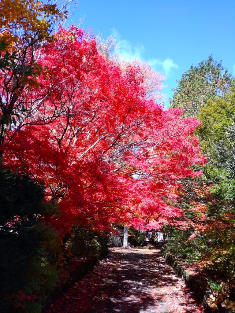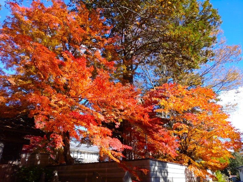 今年は例年より少し遅めですが、浅間神社・堀辰雄文学記念館~油や・諏訪神社~泉洞寺の3か所では、木々が赤や黄に染まり、見ごたえのある風景が広がっています。