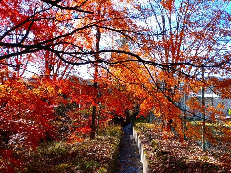 今年は例年より少し遅めですが、油や・諏訪神社~泉洞寺・分去れの3か所では、木々が赤や黄に染まり、見ごたえのある風景が広がっています。