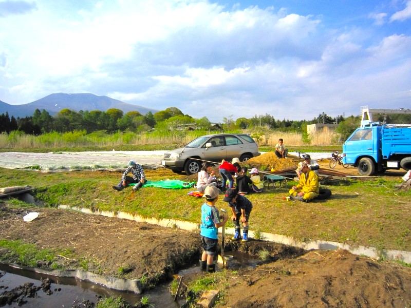 ファミリーごとに区画を持ち、大人は畝立てや苗木植付け、こどもたちは土や水と自由にふれあう。その光景は、世代を超えて楽しむ“追分らしい子育て”そのものです。