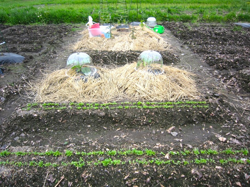 そして、新たに、メロン、葉ネギの苗木植付けと