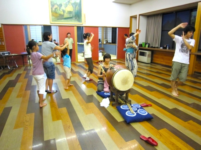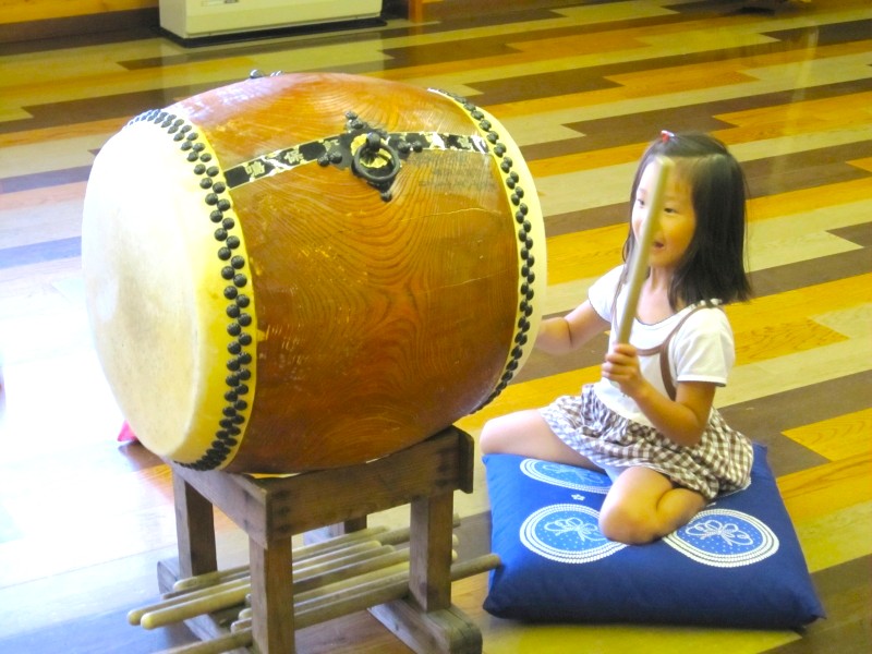 太鼓の叩き手である小学生の練習や、