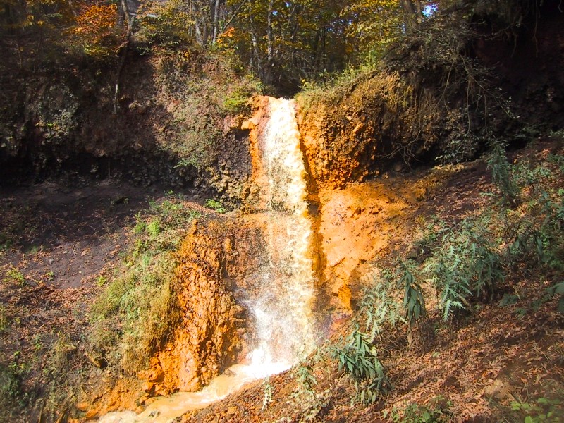 鉄分が多いため、赤茶けた水が落ちてきます。
