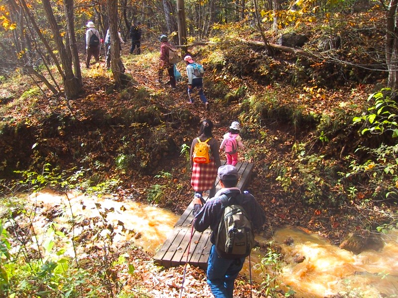 追分公民館から出発し、紅葉きのこ赤滝(血の滝)源泉など、自然の表情をたっぷり感じながら山頂を目指すルート。こどもたちも元気いっぱいで、約3時間で山頂に到着しました。