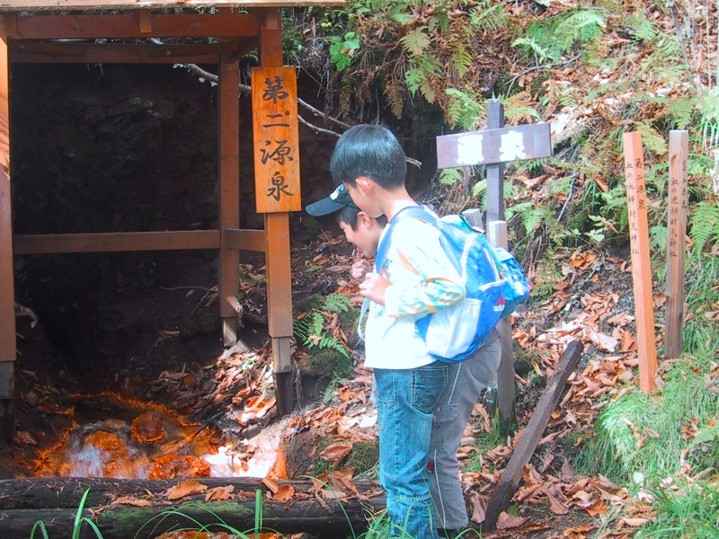 下山は別ルートを通り、おはぐろ池第一源泉にも立ち寄りながら無事下山。家族や地域の仲間と自然の中で過ごす時間は、まさに追分こども会らしい 地域で子育てを楽しむひとときでした。
