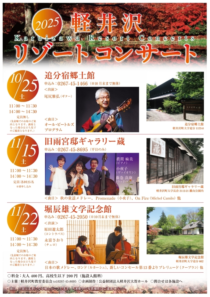 秋の軽井沢散策とあわせて、心温まる音楽体験をぜひ。