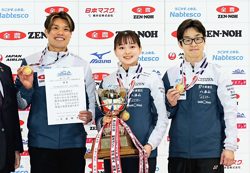 2人は世界選手権(4月、スウェーデン)の日本代表に決まり、上野は4人制の日本選手権との2冠を達成した。