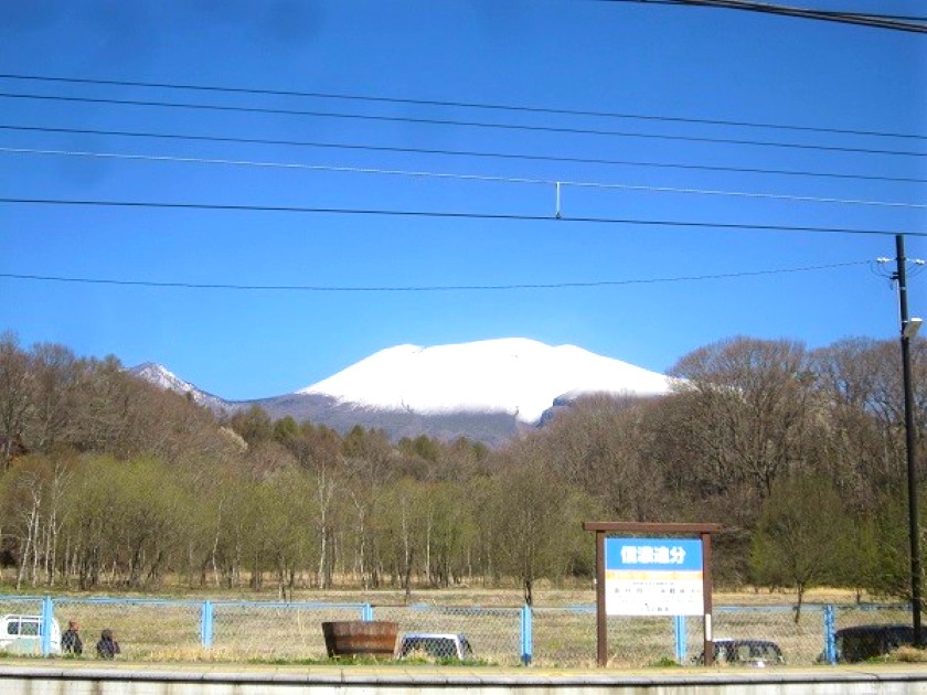 駅に着くと、ホームから浅間山が望め