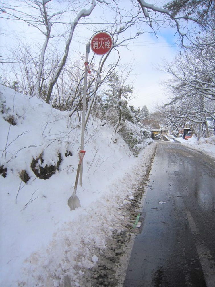 接道の消火栓も、凍結する前に、除雪。