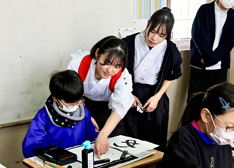 一筆一筆学び贈る書道作品 上田市神川小5年生が上田染谷丘高の指導受けながら|信濃毎日新聞デジタル 信州・長野県のニュースサイト